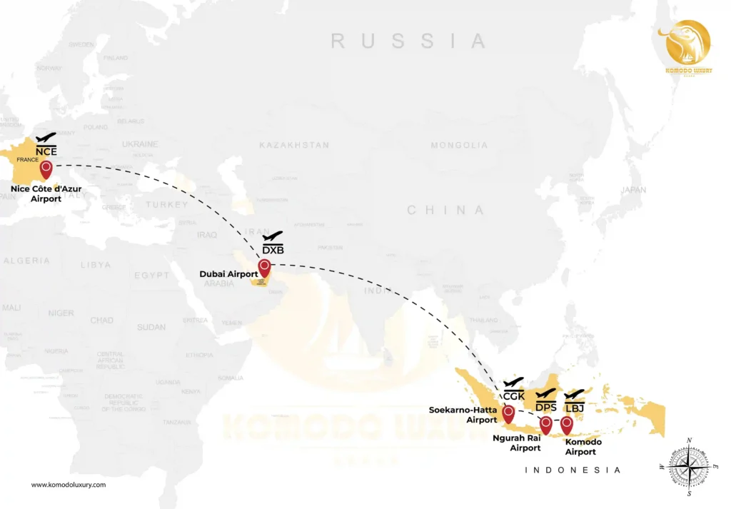 2. Nice Côte d’Azur Airport to Komodo Island via Dubai