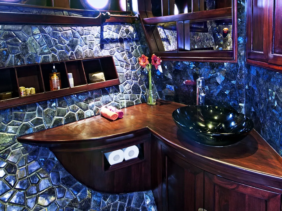 أبحر على متن يخت Manta Mae Liveaboard الرائع المستأجر، وهو يخت فاخر بطول 30 متر يعكس بشكل جميل التصميم الفينيسي التقليدي، مما يعكس التراث البحري الغني لإندونيسيا. تم بناء Manta Mae في عام 2014، ويستضيف بشكل مريح ما يصل إلى 12 ضيفاً في 5 كبائن أنيقة، بما في ذلك جناح رئيسي وغرفتين مزدوجتين وغرفة بطابقين، وكل ذلك بدعم طاقم محترف مكون من 8 أفراد.