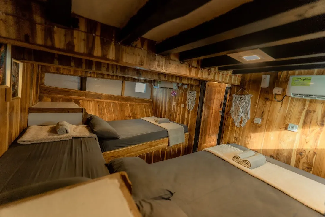 The boat features six cozy, air-conditioned cabins, accommodating up to 17-18 guests. Three cabins have private ensuite bathrooms, while the others share two clean and well-maintained bathrooms. Enjoy delicious meals onboard, including breakfast, lunch, and dinner, with complimentary coffee, tea, mineral water, and snacks throughout the day.