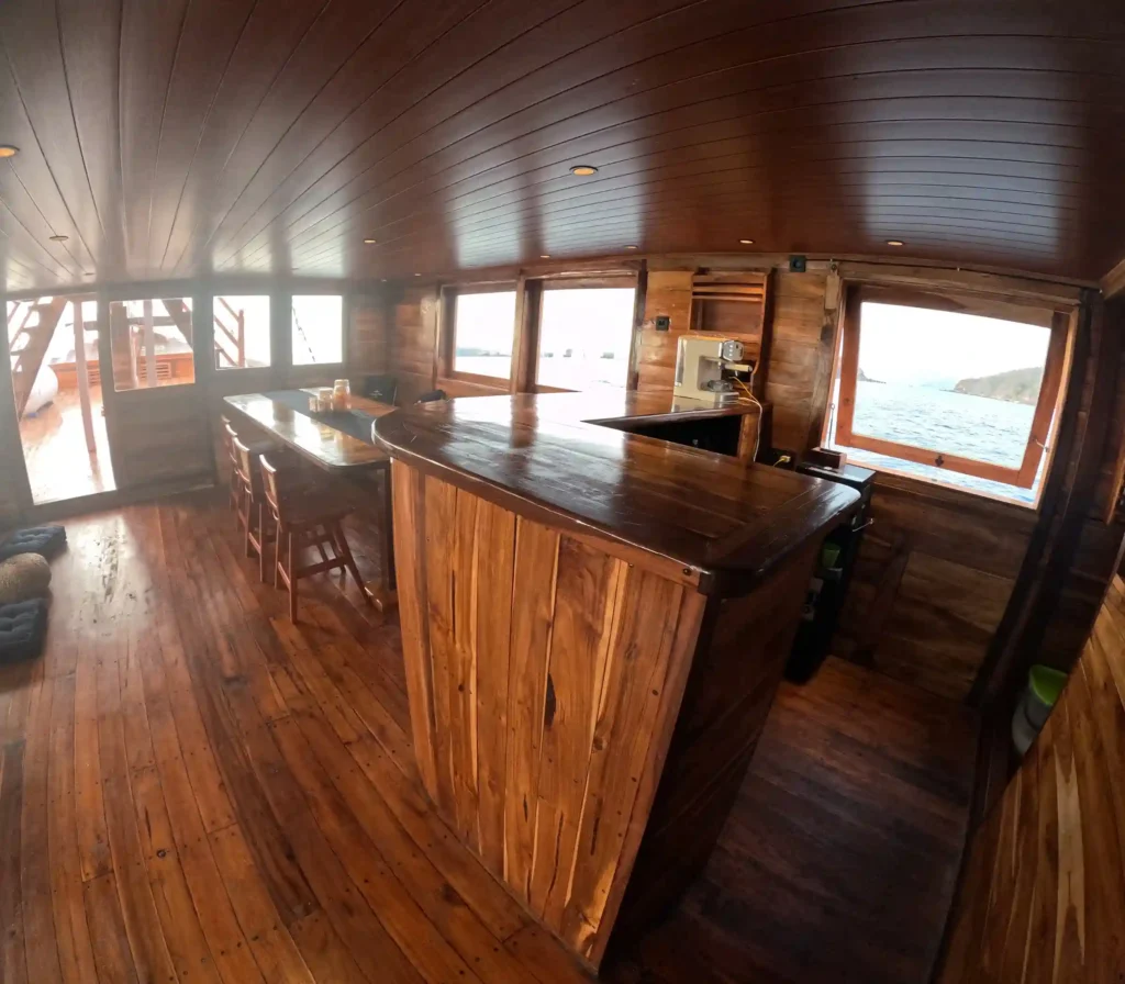 The Aimar Always Boat Charter offers a range of premium facilities designed for comfort and relaxation while exploring Komodo National Park. Enjoy the spacious bar area for refreshing drinks, an inviting indoor dining area perfect for meals with a view, and a cozy indoor lounge area to unwind. For a restful night, the sea view cabin provides stunning views, while the air conditioning ensures a cool and comfortable atmosphere throughout your trip. With these top-notch facilities, Aimar Always Boat Charter guarantees an unforgettable experience in Komodo National Park.