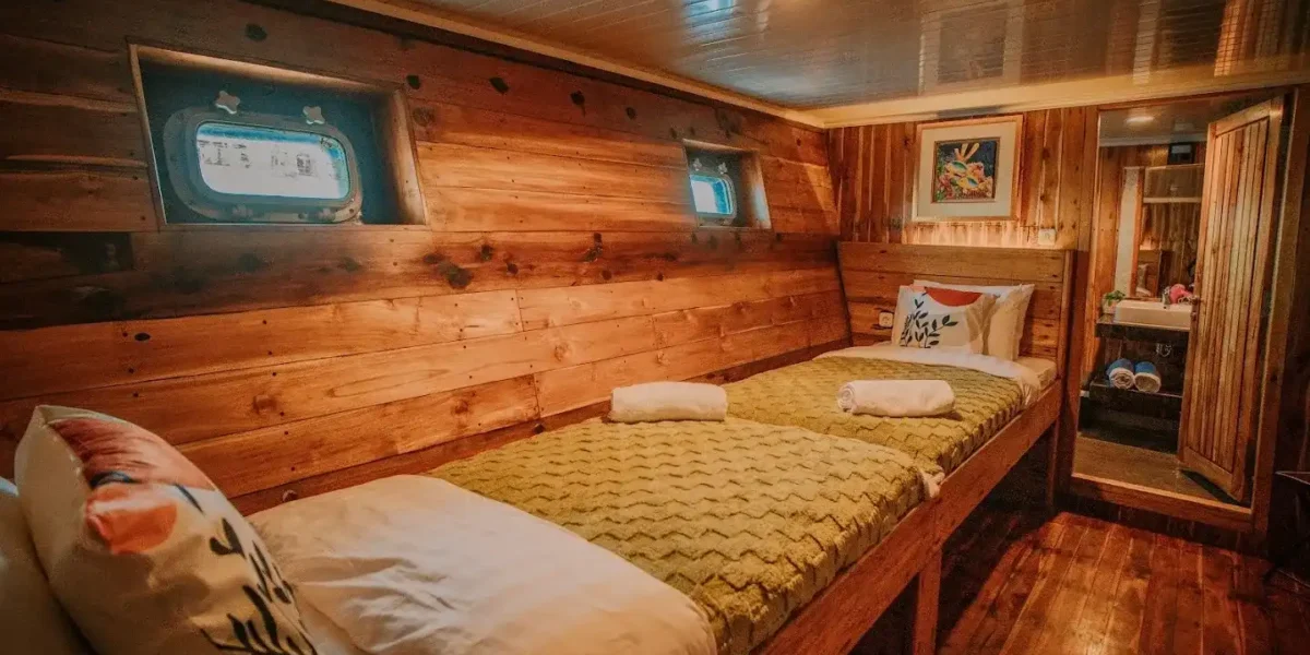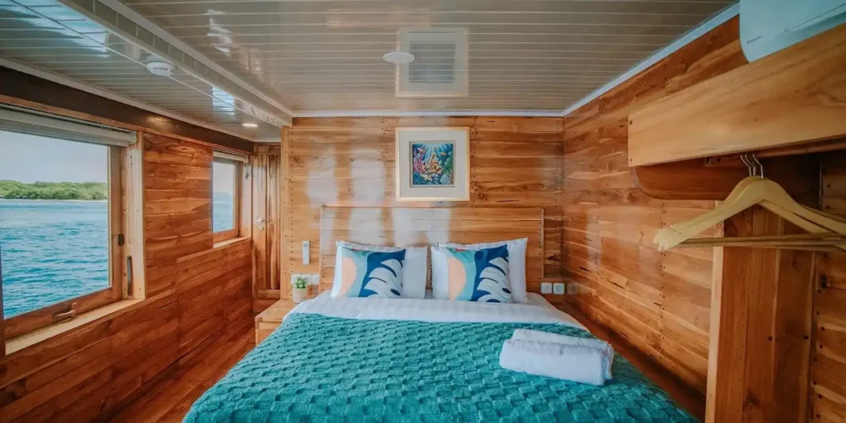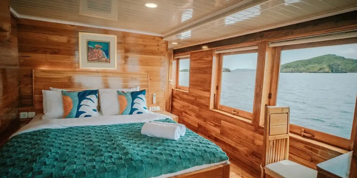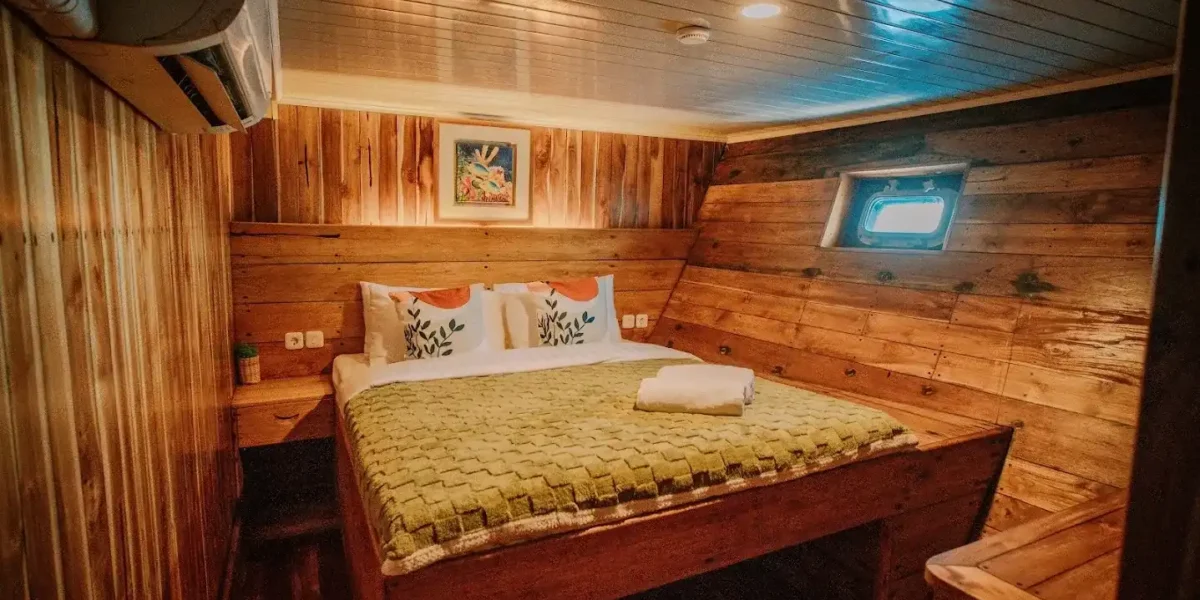 The Alore Phinisi offers a wide range of facilities for maximum comfort and convenience. With seven spacious cabins for up to 16 guests, each cabin includes air conditioning, en-suite bathrooms with hot/cold showers, and electrical sockets.