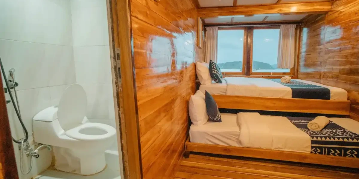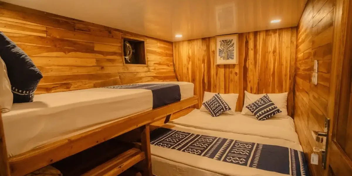 The Maipa Deapati Phinisi features comfortable air-conditioned cabins with en-suite bathrooms, providing privacy and convenience. Whether you’re a diver or a snorkeler, the dedicated dive deck makes it easy to explore the vibrant marine life around Komodo Island.