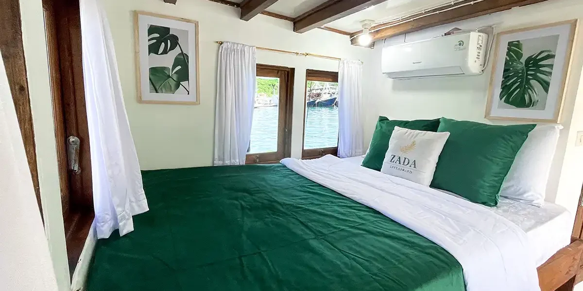 Zada Hela is a luxurious and comfortable boat, enjoy the feel of a vacation in Komodo Island that is comfortable, spectacular, and impressive. Zada Hela was designed for a group, family members, or  company trip. The boat has 29,98M in length and 5,27M in width with a 1-26 person capacity