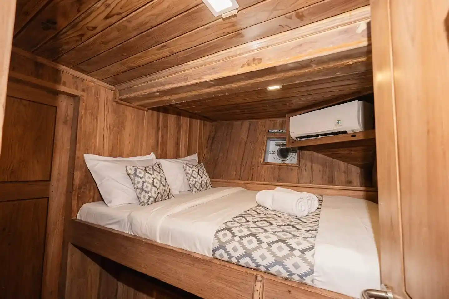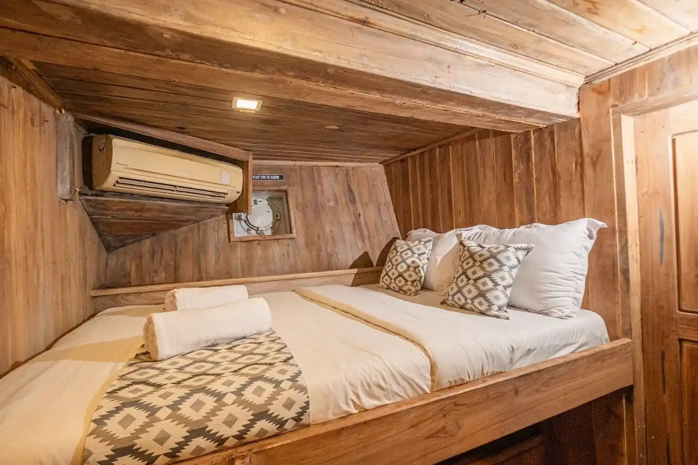 Cajoma V Phinisi offers everything you need for a seamless and luxurious sailing experience through Komodo National Park. Each of the seven cabins features air conditioning, an en-suite bathroom with hot and cold showers, and comfortable bedding to ensure restful nights after a day of adventure around Komodo Island.