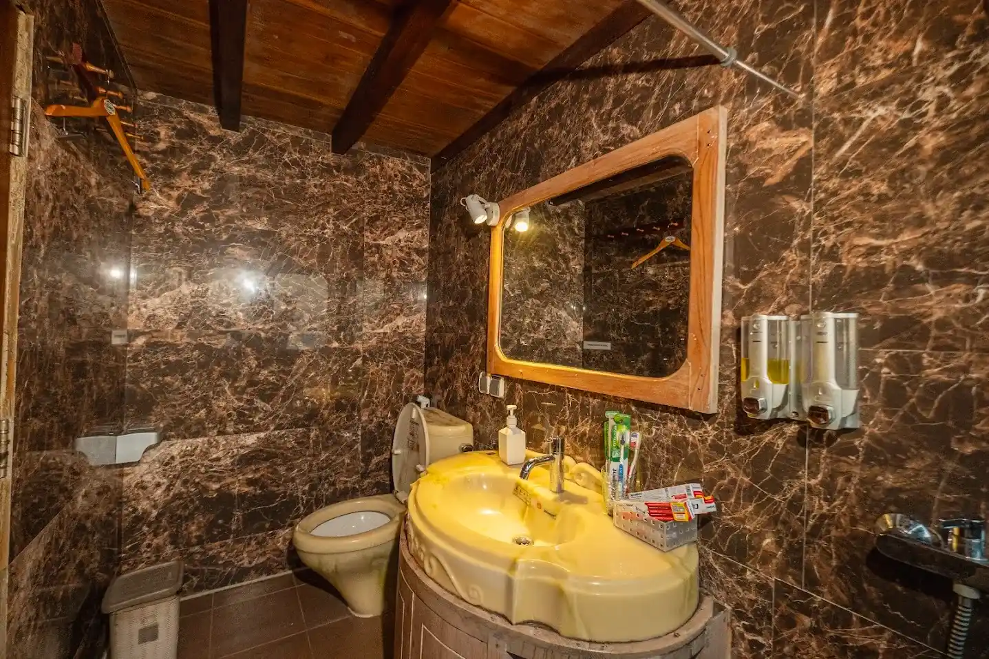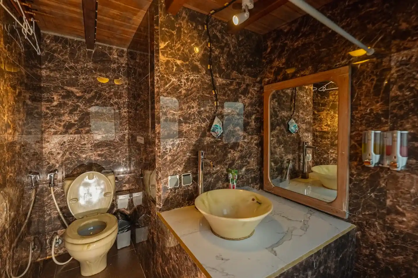 Guests can unwind in the spacious indoor lounge and bar area, enjoy a delicious meal at the open-air dining space, or relax on the wide sun deck equipped with lazy chairs, bean bags, and a large sofa bed — perfect for sunrise yoga or sunset moments.