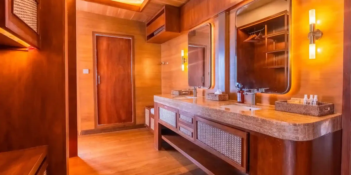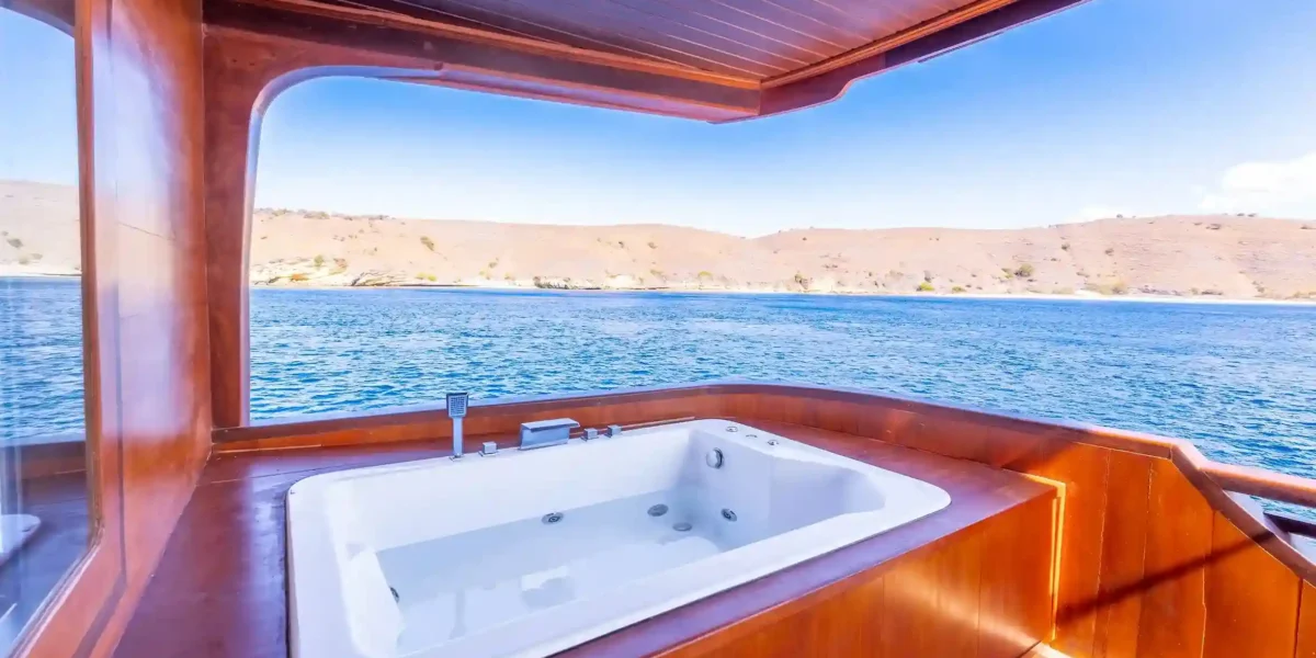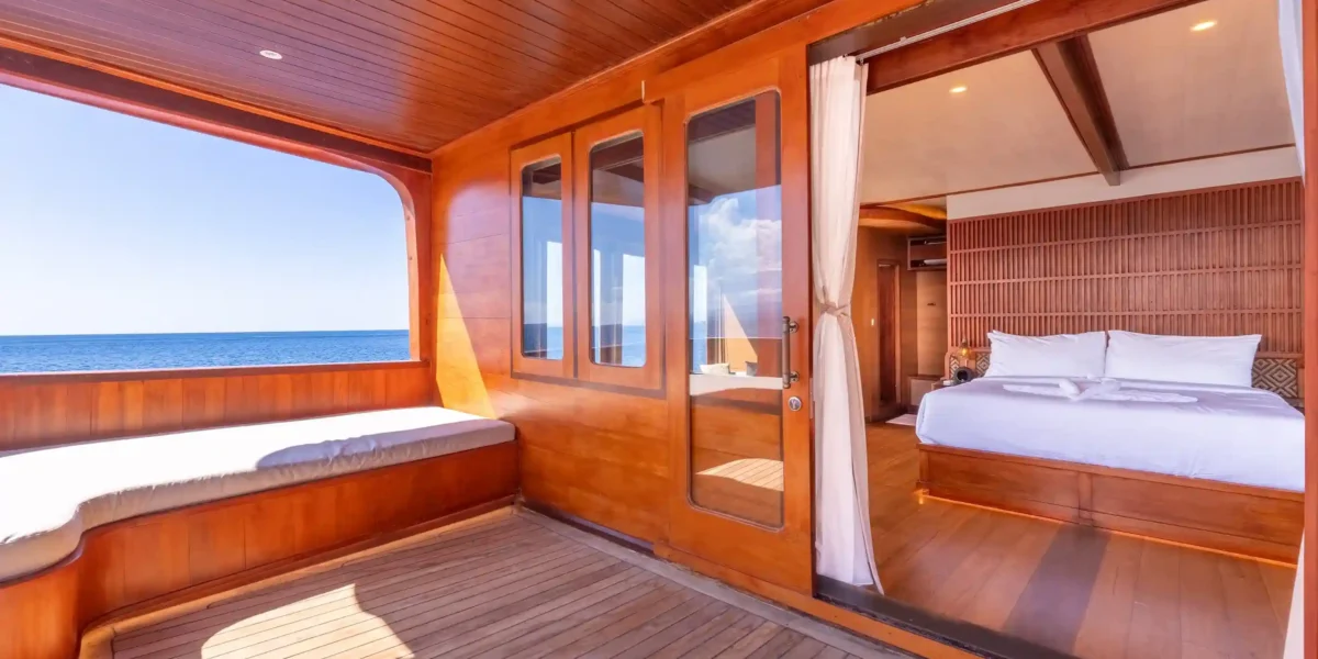 Sanctuary Phinisi Yacht is designed with comfort and luxury in mind, ensuring every moment on board is a delightful experience. With four spacious decks, the yacht offers plenty of room for relaxation, dining, and entertainment. The open-air dining area allows guests to enjoy meals under the sky, while the cozy indoor spaces provide a retreat from the sun when desired. On the upper deck, you’ll find a jacuzzi and a dedicated space for lounging, perfect for taking in the panoramic views of Komodo National Park. The yacht is equipped with modern amenities like air-conditioned cabins, each with its own en-suite bathroom, and large windows that allow you to enjoy the beautiful surroundings. For those with an adventurous spirit, the yacht is also outfitted with a diving deck, ideal for exploring the rich underwater world of Komodo. The crew, including a chef, guide, and captain, ensures that all your needs are taken care of, allowing you to relax and focus on enjoying the journey. With state-of-the-art navigation systems, luxurious living spaces, and a variety of recreational activities, Sanctuary Phinisi Yacht Boat Charter offers everything you need for an unforgettable experience on the water.