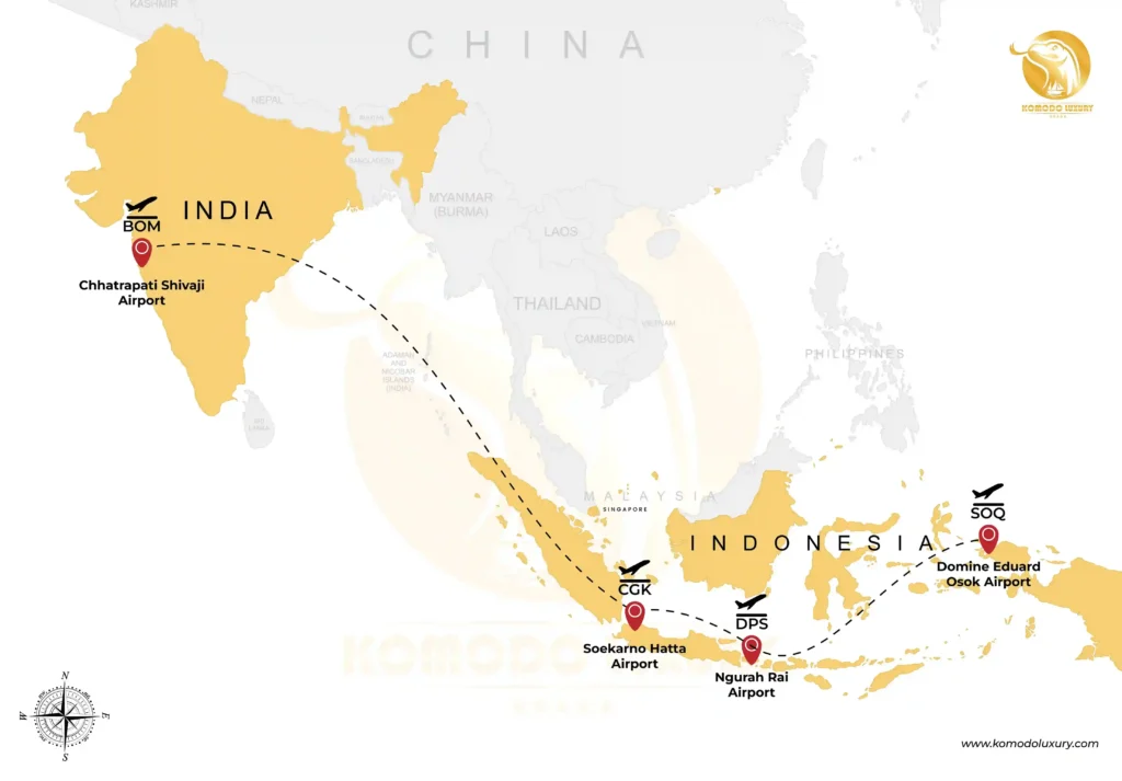 2. Chhatrapati Shivaji International Airport [BOM] to Domine Eduard Osok Airport [SOQ] via Jakarta and Bali
