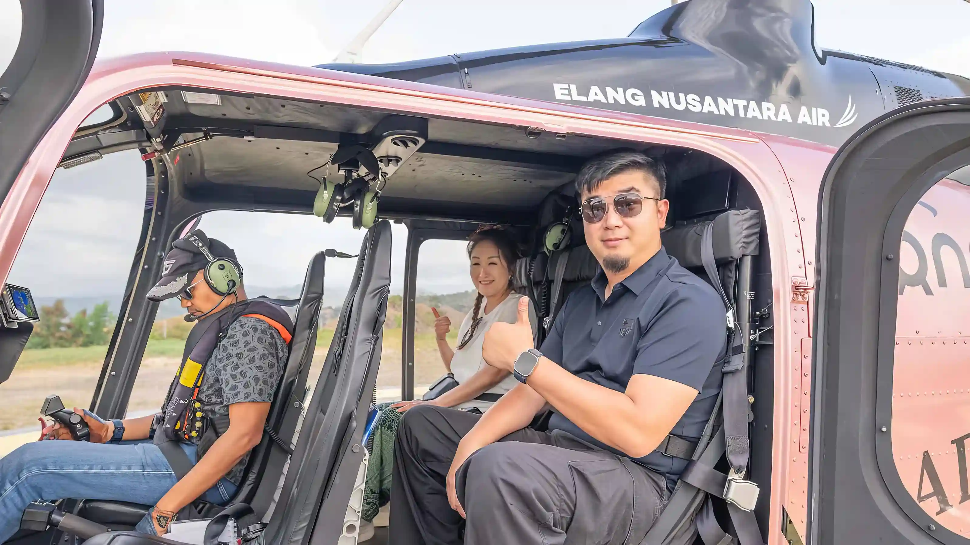 All helicopter tours in Komodo are priced for up to 4 passengers. Komodo helicopter tour prices may vary depending on the specific package and any customizations you choose. If you're looking for a more personalized experience, booking a private helicopter charter Komodo or tailoring your helicopter tour Labuan Bajo to specific destinations or times can adjust the overall cost. Please contact us directly for customized packages or to inquire about pricing for additional passengers or exclusive requests.