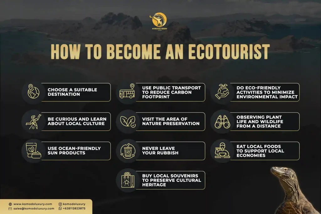 You can consider visiting Komodo National Park or Raja Ampat Marine National Park while sailing on a boat and doing eco-friendly things such as catching sunset, sunbathing, wildlife safaris, diving, trekking, etc. By visiting nature reserves and preserving them, you are contributing to being an ecotourist.