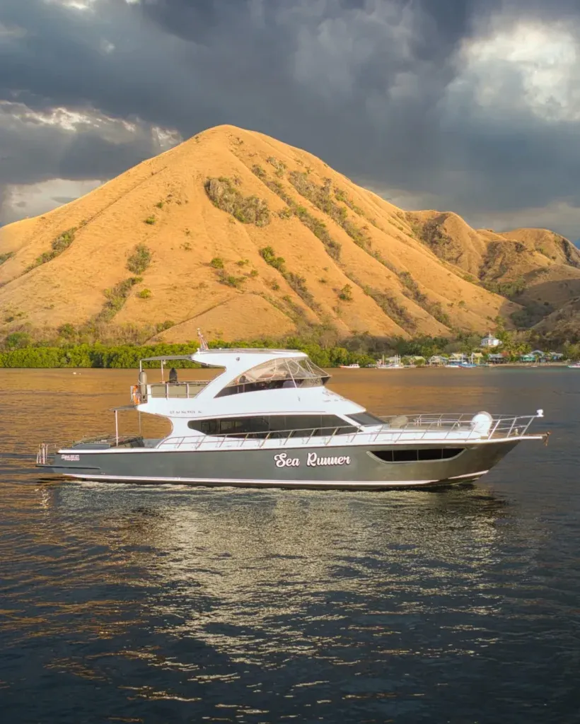 Meet the Sea Runner Speedboat, your ideal vessel for exploring Komodo National Park. Packed with amenities like a toilet, shower, AC, TV, and more, our speedboat ensures comfort and convenience. With a spacious sundeck, seating area, and powerful engines, it accommodates up to 45 passengers. Led by a professional team, including a captain, crew, and tour guide, the Sea Runner Speedboat guarantees an unforgettable experience in Komodo National Park.