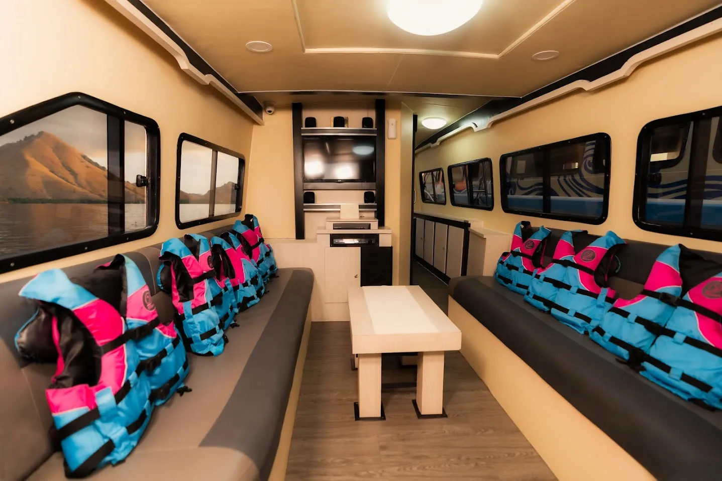 D3 快艇为探索迷人的科莫多国家公园提供了豪华舒适的方式。这艘先进的船只非常适合那些希望体验科莫多美丽风光的游客,船上设施一应俱全,让您的旅程顺利而难忘。船上配有卫生间和淋浴,确保您在科莫多之旅中享受最大程度的舒适。您可以使用空调保持凉爽,或通过船上的扬声器欣赏视频和音乐等娱乐节目。为方便起见,船上还配备了冰箱和水槽,冰箱里的饮料可保持冰镇,水槽则可用于快速清洁。休息区提供了一个舒适的放松空间,而船舱/第二休息室则提供了一个配有电视和空调的私人休闲空间。游艇外部设有宽敞的日光浴甲板和高架上层座椅区,可将科莫多国家公园的迷人景观尽收眼底。后座区则是一边欣赏美景,一边享受旅程的理想选择。D3 快艇配备双 250 马力发动机,可确保您在探索科莫多原始美景的旅途中平稳、快速地航行。快艇可舒适地容纳多达 12 名乘客,并配有一名船长、两名船员和一名导游组成的专业船员,以确保安全和内容丰富的探险之旅。无论您是参加快艇之旅还是深入科莫多国家公园,D3 快艇都是您寻求难忘豪华体验的最佳选择。