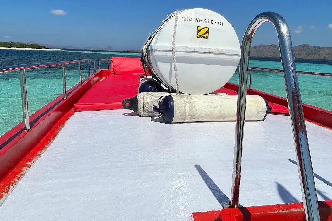 乘坐 "红鲸一号"(Red Whale I)体验难忘的科莫多国家公园探险之旅。这艘宽敞的快艇专为舒适和刺激而设计,最多可容纳 13 名乘客,配备两台功率强劲的 250 马力铃木发动机。您可以轻松地从一个岛巡游到另一个岛,探索科莫多岛及其周边水域的壮丽美景。船上配有国际标准的卫生间和宽敞的 8 米长日光浴垫,让您享受每一步的便利和放松。无论您是寻求私人游览还是难忘的团体游览,红鲸一号都能为您提供一流的体验,让您探索世界上最具标志性的目的地之一。现在就预订科莫多之旅,踏上印度尼西亚科莫多国家公园的惊险之旅。