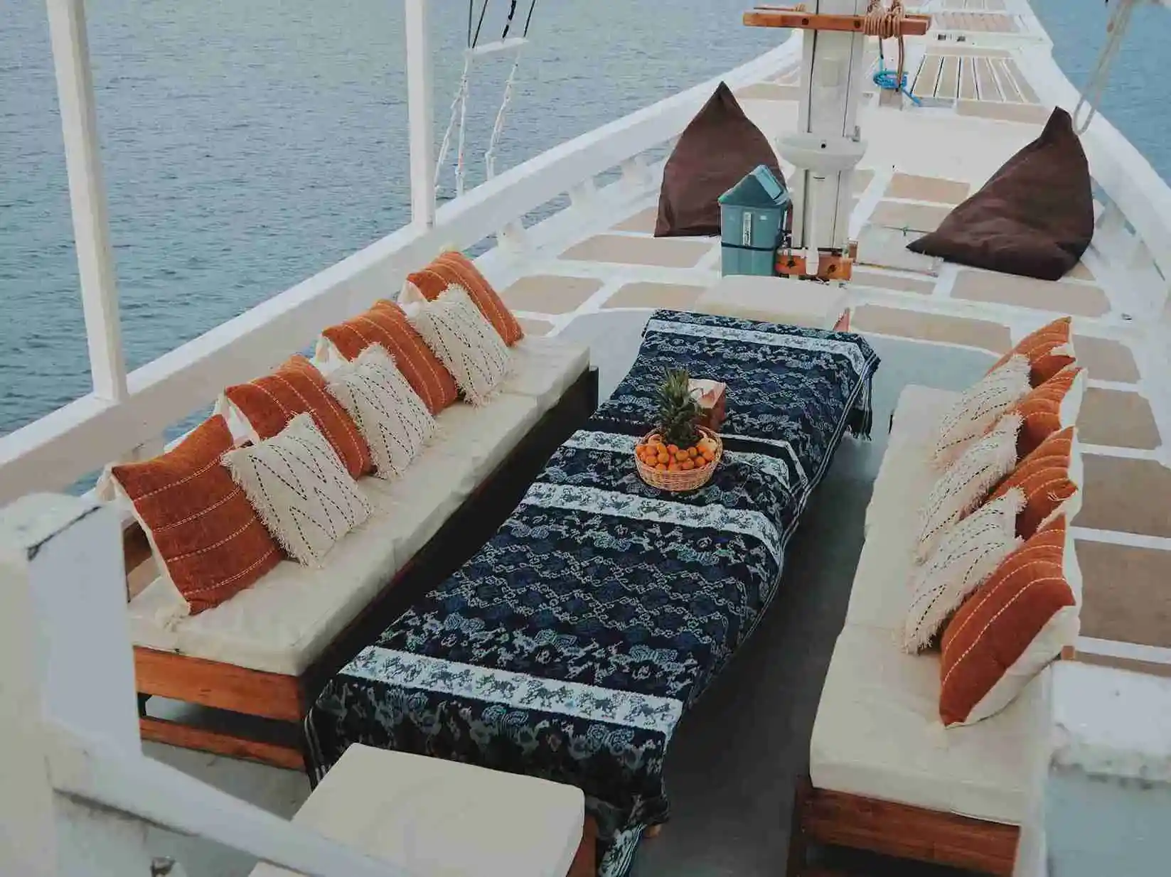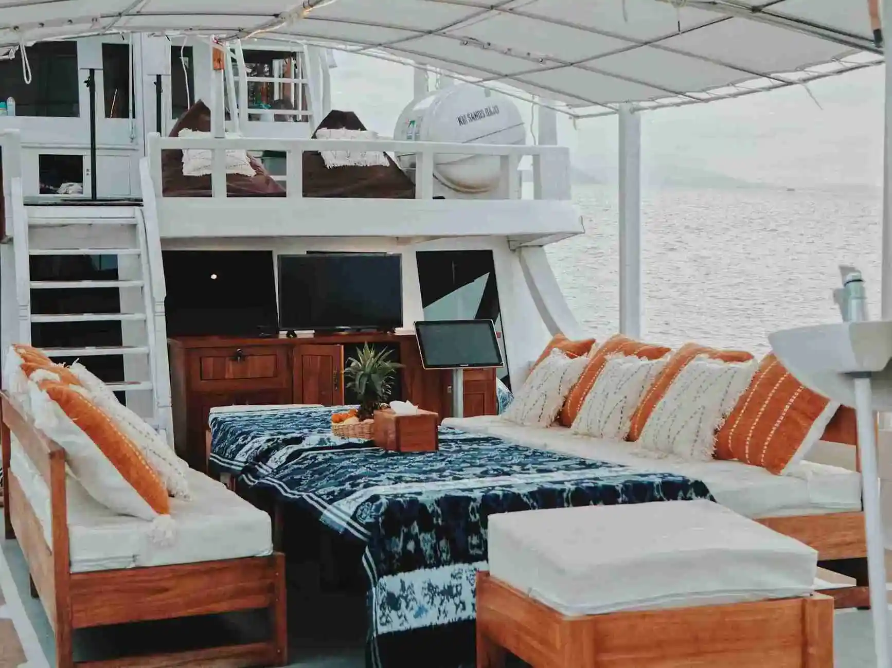 金沙巴霍游艇租赁公司提供一系列顶级设施,旨在提升您探索科莫多国家公园奇观的体验。您可以在卡拉 OK 区尽情娱乐,在休闲区放松身心,还可以在室内用餐区轻松用餐。日光浴甲板是沐浴阳光、欣赏壮丽景色的绝佳场所。有几间船舱可以欣赏到海景,让您一觉醒来就能看到美丽的大海。每个舱房都配备了私人浴室和空调,确保您在整个住宿期间享有最大的舒适度和私密性。有了这些优质设施,金沙巴霍酒店保证让您在科莫多国家公园度过一次难忘的探险之旅。