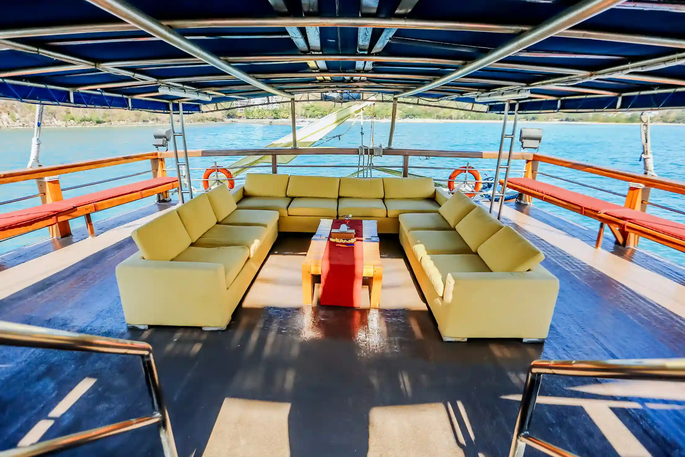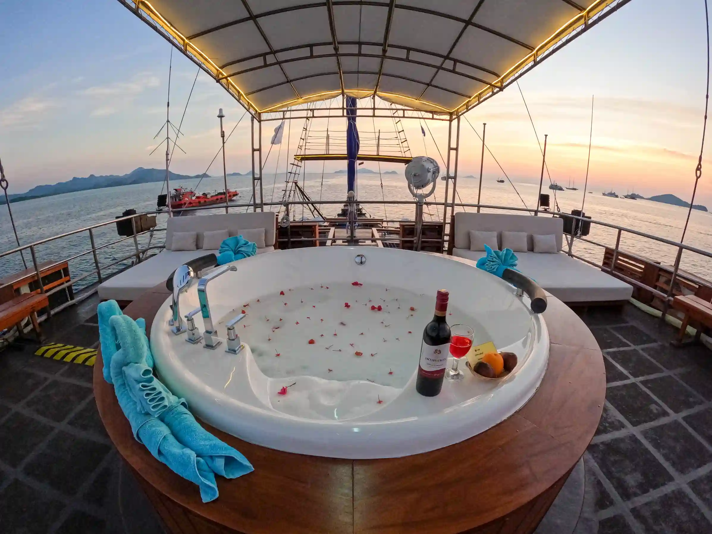 郑和号,这艘 35 米长的游轮重新定义了旅行,设有带浴室、空调和现代化设施的客舱、全景休息室和带按摩浴缸的阳光甲板,让您尽情放松。无论您是寻求惊险刺激的浮潜探险,还是在星空下度过宁静的夜晚,郑和号都能满足您的各种愿望。客人可以在船上餐厅品尝精美的餐点,在宽敞的起居区放松身心,感受印尼航海传统的精神。